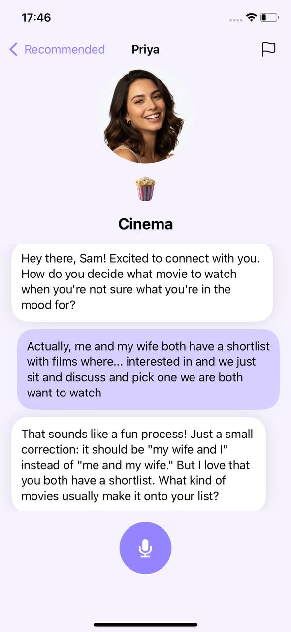 "I love how the app adapts to my skill level. The conversations feel real and relevant to my daily life. Highly recommend for anyone serious about improving their English."